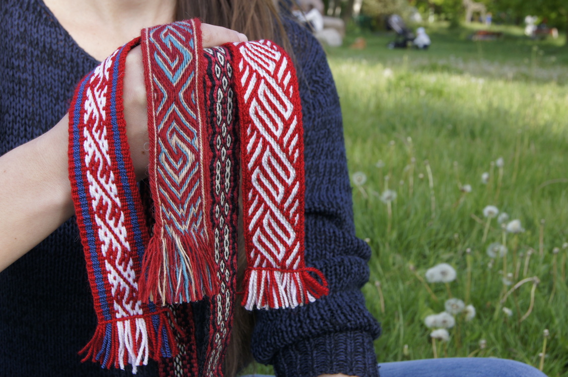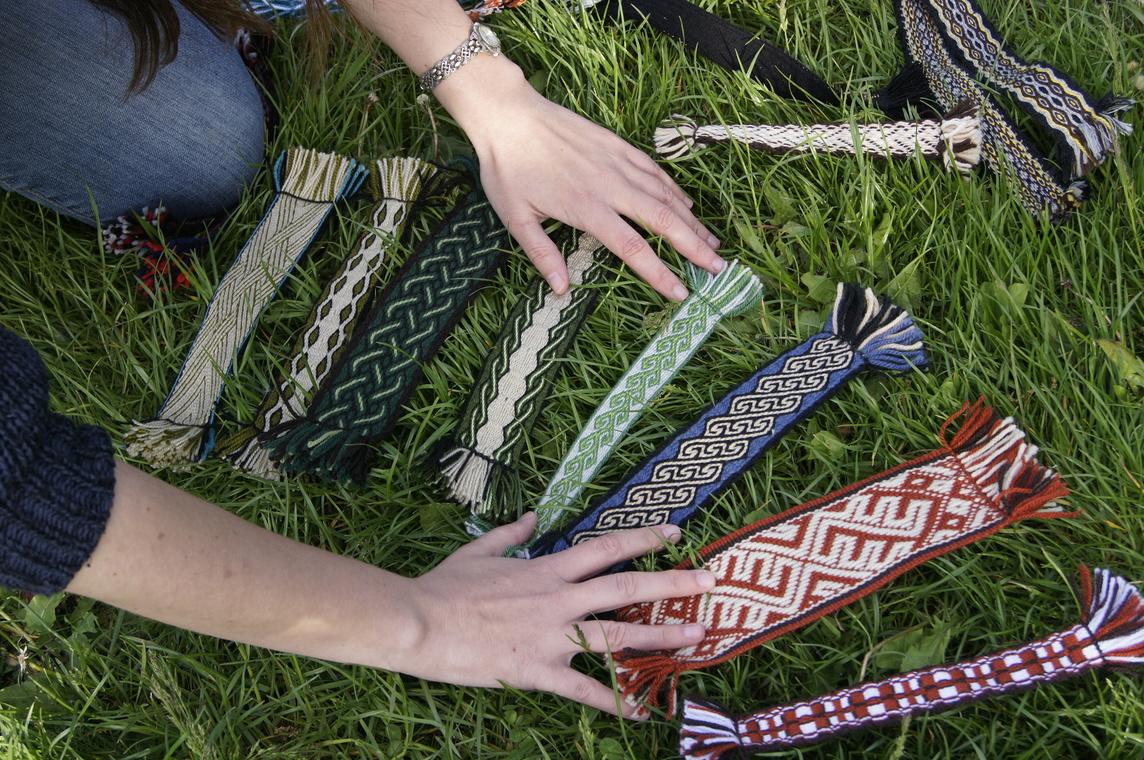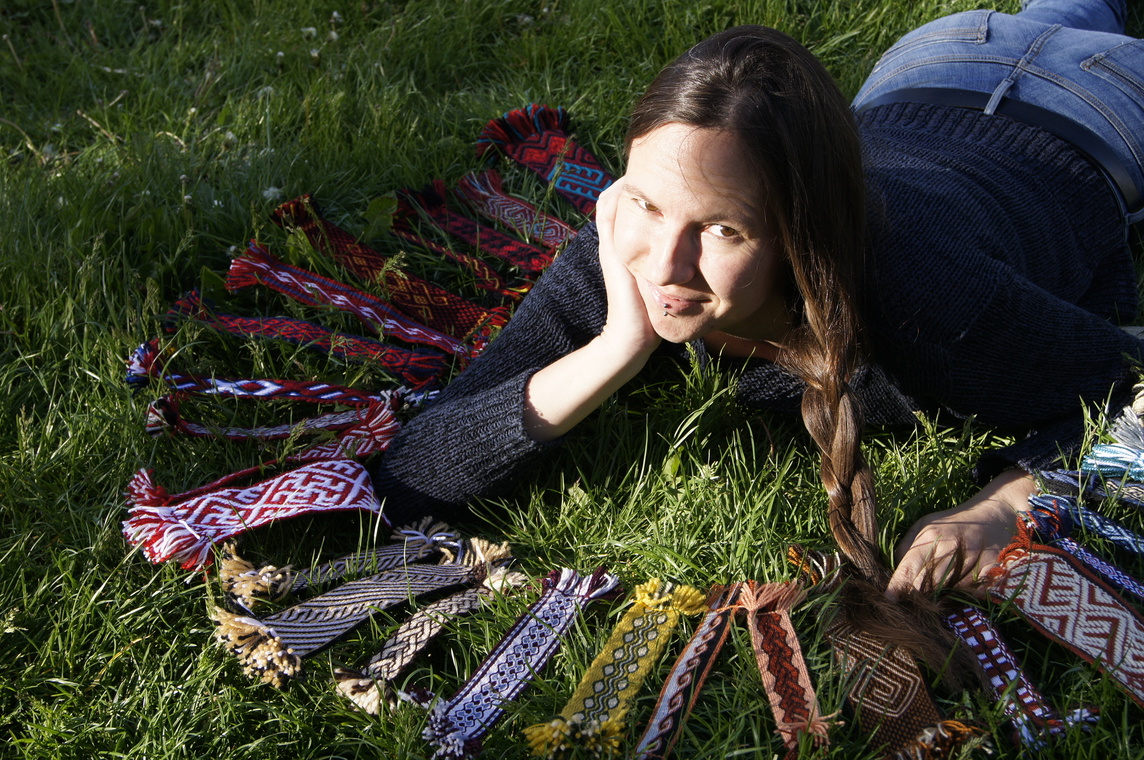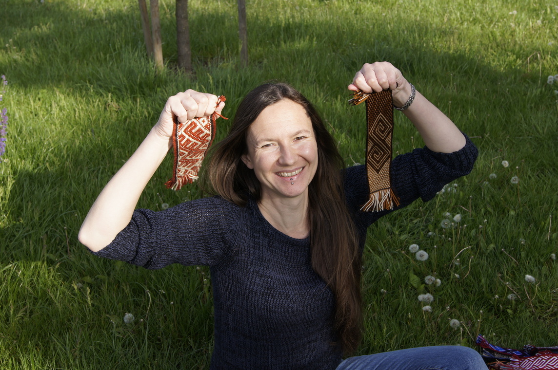 Do momentu, kiedy na jednym z takich festynów zupełnym przypadkiem trafiłam na pokaz dziewczyny, która zajmowała się właśnie tkaniem krajek. Zobaczyłam dziewczynę, która rozciągała wełnę między dwoma wbitymi w ziemię patykami i zatrzymałam się, żeby popatrzeć co ona zamierza z tym zrobić. Ona, jak się okazało, przygotowała sobie warsztat tkacki do tkania na bardku, zupełnie najprostszej krajki. Śledziłam jej ruchy od początku do końca i tak zafascynowała mnie ta technika, że od tamtego momentu zaczęłam szukać informacji.