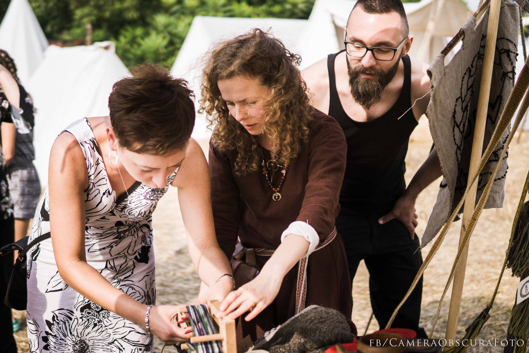 September started off very actively! Our association took part in the 5th Medieval Games Festival at the open-air museum “Łęczyca Peasant Farm” in Kwiatkówek near Łęczyca, Poland. This event, organized by the Historical Reconstruction Group Leśny Witeź from Łódź, distinguishes a rich program focused on medieval games and plays, as well as extraordinary contests, for example for the best flatbread or historical stand-up. An interesting point of the event was the performance “Loki-sey” (Thinking of ‘Odyssey’? That’s right!) prepared and performed jointly by historical reconstruction groups from Poland, Greece, England and Italy. During the festival our WICIstore stand was open where you could try your hand at knitting on a single needle, so-called naalbinding, get a grasp of tablet weaving or make your own medieval postcard using wooden hand carved stamps. We will definitely return to Łęczyca, we were enchanted by the tranquility of the open-air museum and the great atmosphere of the whole event.