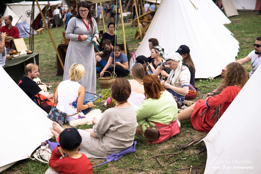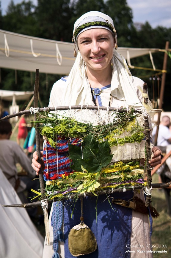 During the Ślęża Slavic Festival our Association conducted a ‘natural weaving‘ workshop. We invited participants to assemble their own weaving frames from branches, tie a woolen or linen warp, and then weave on it with grass, flowers and yarns. Beautiful, summer and floral works came to being! We are glad that both reenactors and festival visitors took part in the workshop. Thanks to this common activity we could all get to know each other and integrate.
