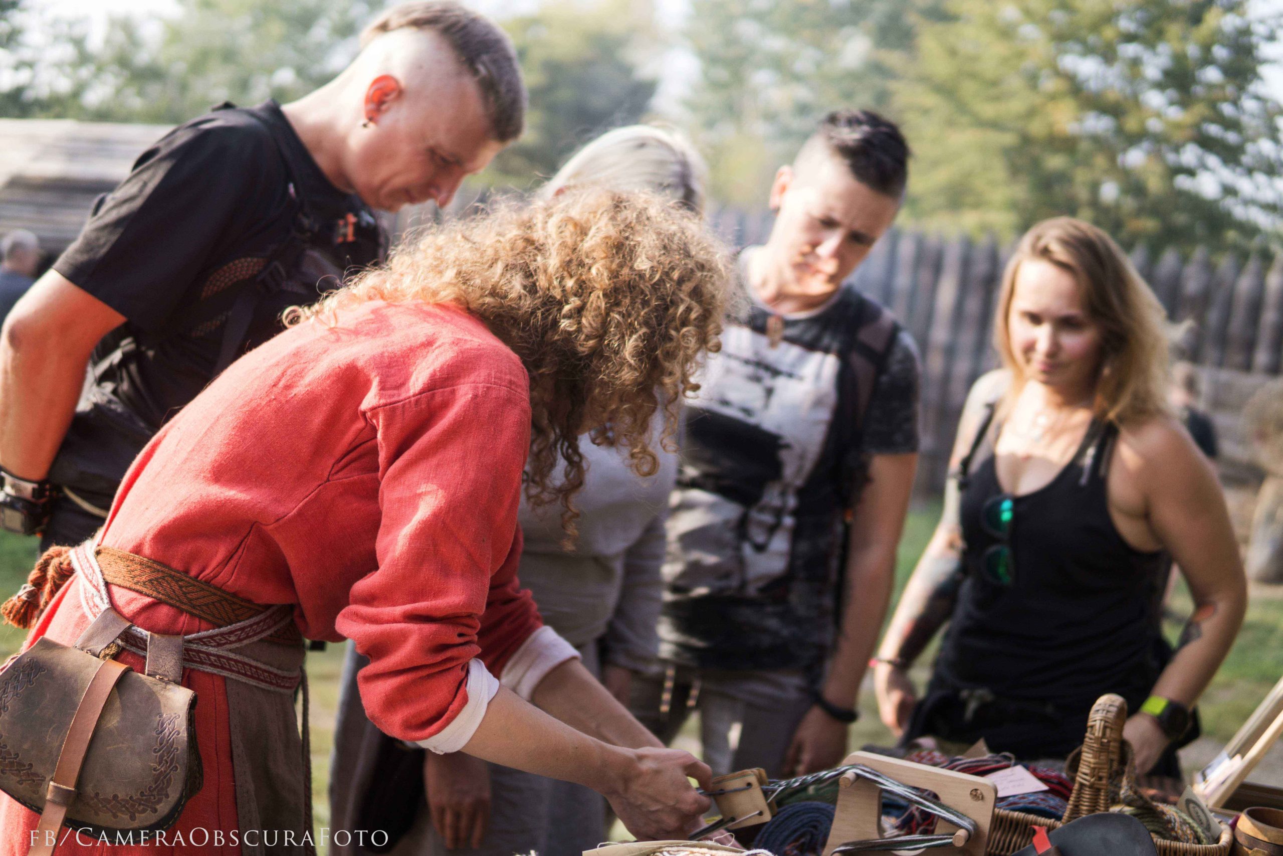 Ostatnią dla naszego stowarzyszenia imprezą sezonu 2018 był dwudniowy piknik w Warowni Jomsborg w Warszawie w dniach 8-9 września. Cieszymy się, że tak wielu zwiedzających odwiedziło Warownię oraz nasz WICI kram, na którym można było zobaczyć przekrój produktów, które wytwarzamy. Prezentowaliśmy także proces ich wykonania, np. dzianie na igle, dzięki któremu można stworzyć wspaniałe wełniane ocieplacze na dłonie, rękawiczki skarpetki, czapki itp. Pokazywaliśmy także mechanizm tkania na tabliczkach na małym stołowym krośnie oraz proces rzeźbienia w lipowym drewnie stempli, których niegdyś używano do tworzenia wzorów na tkaninach. My wykorzystaliśmy stemple nieco inaczej – wraz ze zwiedzającymi stemplowaliśmy pocztówki z motywami wikińskimi. Dziękujemy wszystkim uczestnikom, organizatorom i zwiedzającym za wspaniałą zabawę, tańce, śpiewy i rozmowy o wszystkim. Do zobaczenia!